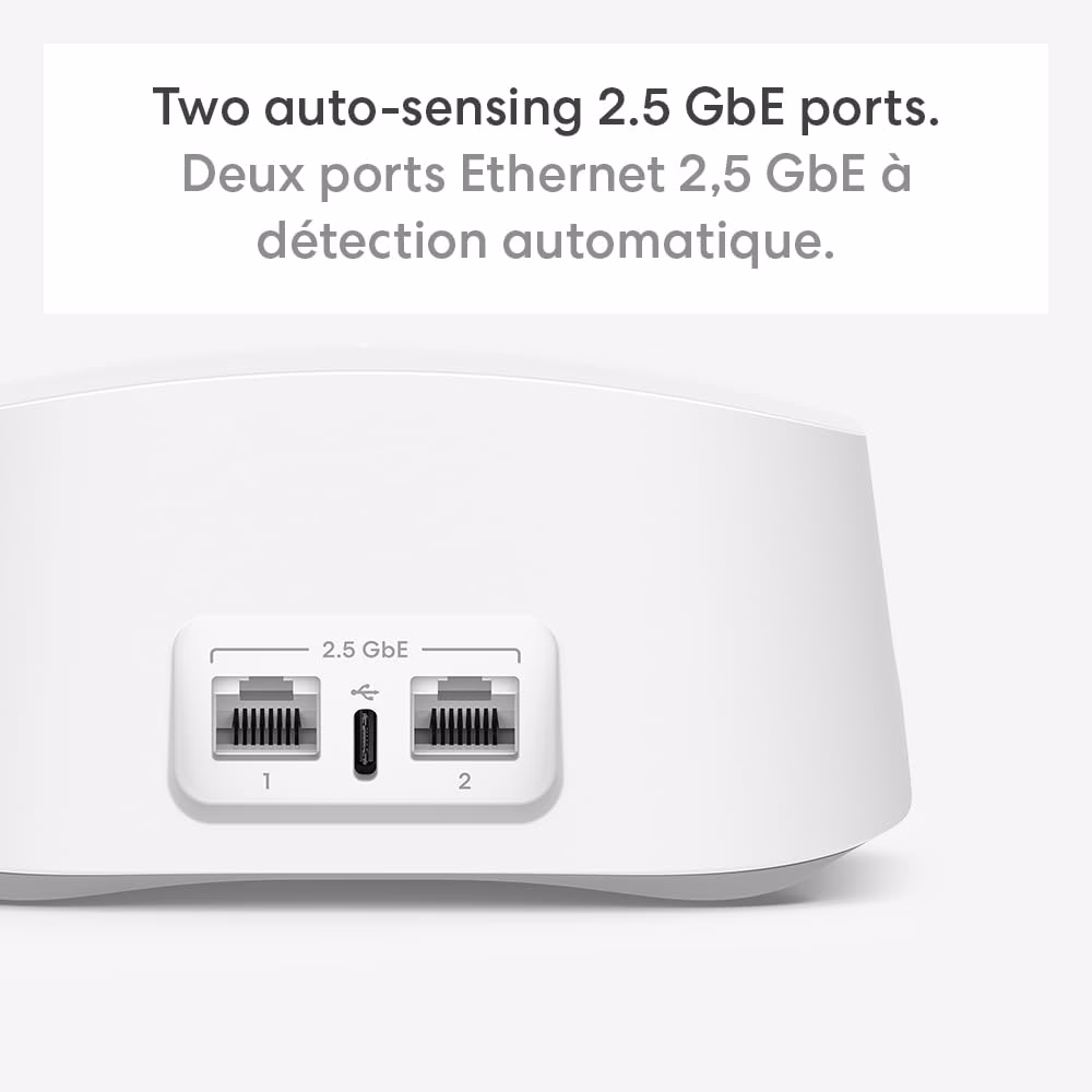 - FULL SPEED AHEAD – Support for internet plans up to 2.5 Gbps with two auto-sensing 2.5 GbE ports and wireless speeds up to 1.8 Gbps.