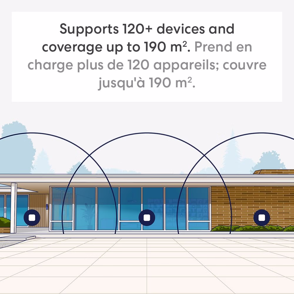 - HIGHLY CONNECTED – eero 7 supports 120+ devices and 190 m² of coverage (a 7.7 meter radius), so there’s plenty of reliable Wi-Fi 7 performance to go around.