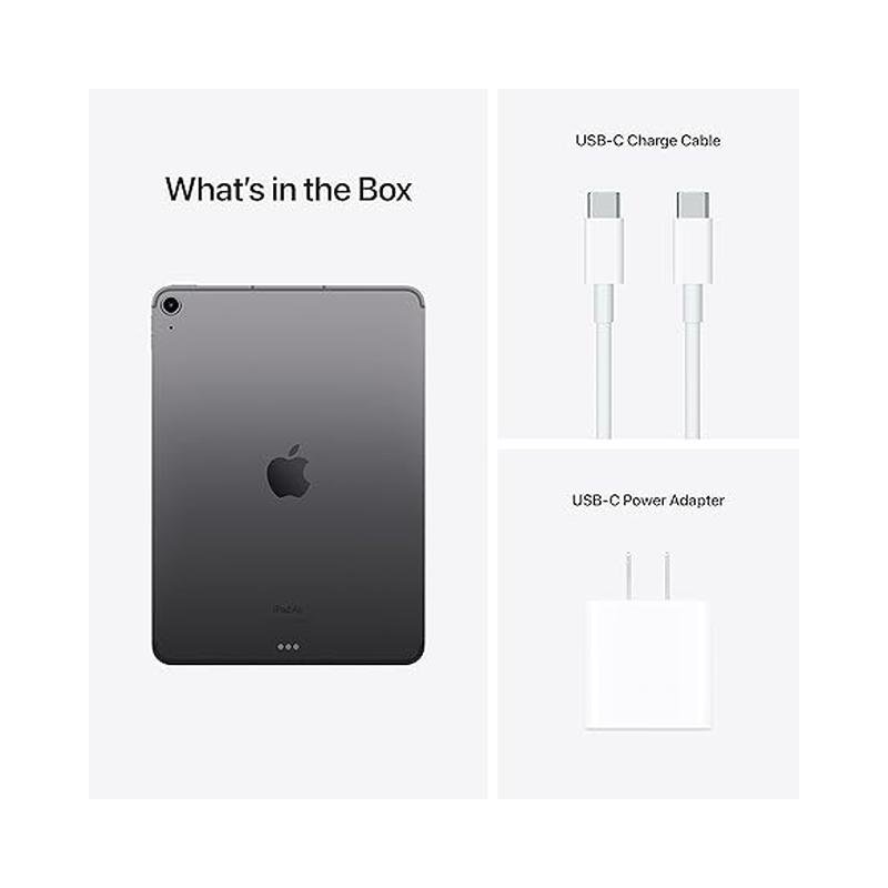 - The Apple iPad Air (5th Generation) box contains the iPad Air device, a USB-C Charge Cable (1 meter), and a 20W USB-C Power Adapter.