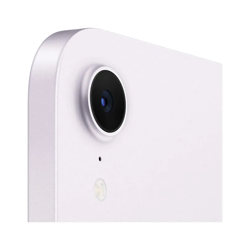 The iPad mini features a 12MP Center Stage camera with a ƒ/2.4 aperture. It includes Smart HDR 4, and can record 1080p HD video at 25, 30, or 60 fps. It also supports time-lapse video with stabilization, extended dynamic range for video up to 30 fps, and cinematic video stabilization. Other features include wide color capture for photos and Live Photos, lens correction, Retina Flash with True Tone, auto image stabilization, and burst mode.