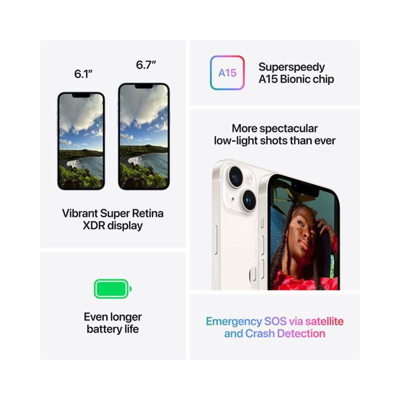 Experience cutting-edge technology with the iPhone 14, featuring a stunning design, powerful performance, and industry-leading durability.