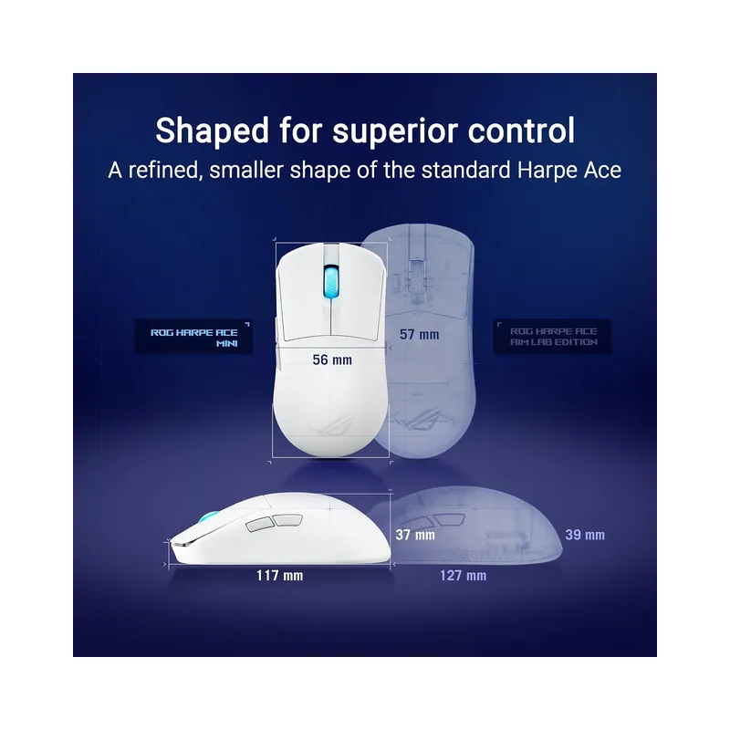 ASUS ROG Harpe Ace Mini Wireless Gaming Mouse, AimPoint Pro 42K Optical Sensor, ROG Polling Rate Booster, Esports & FPS Gaming, Small, Medium, White – Brand New