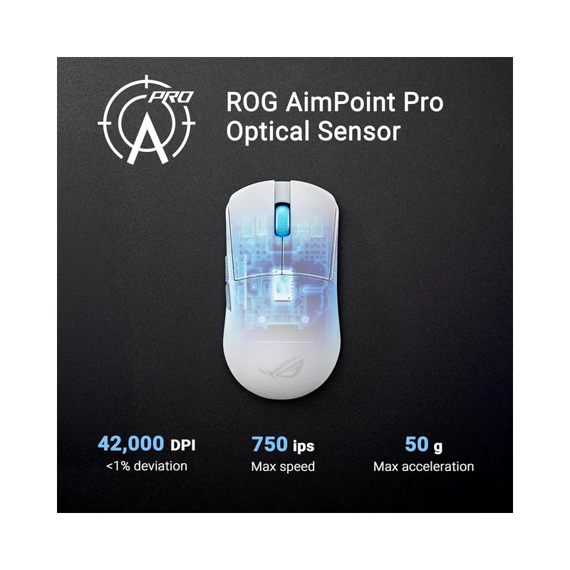ROG AimPoint Pro Optical Sensor – Delivers 42,000 DPI precision and track-on-glass technology, ensuring top-tier accuracy on any surface.