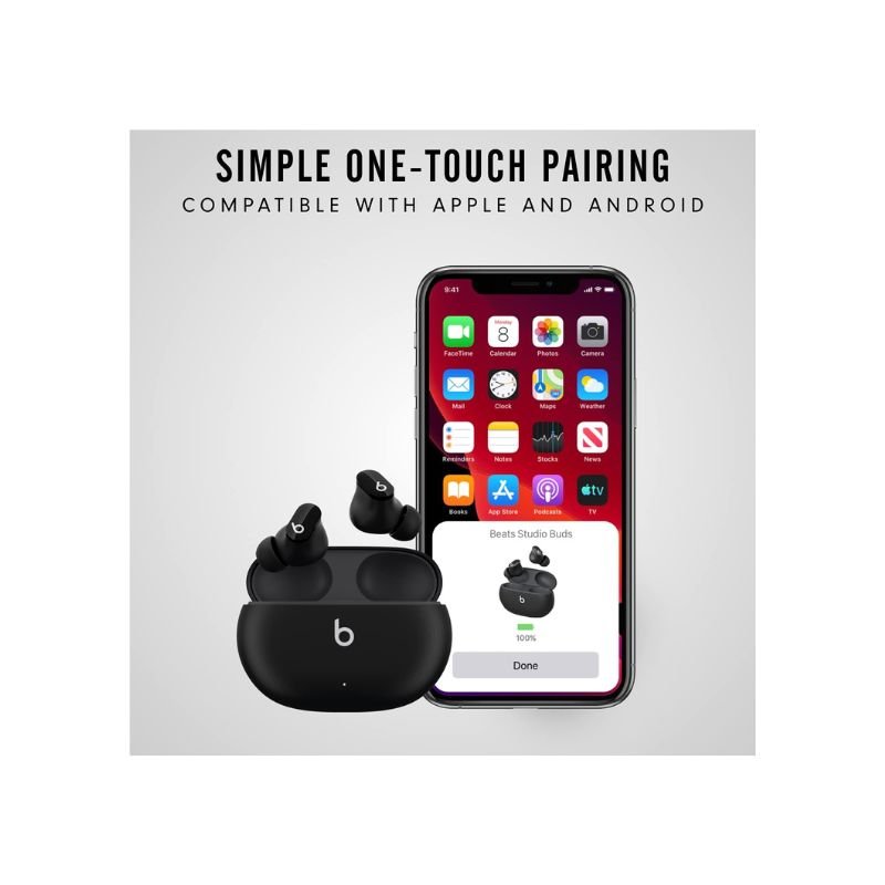 • What’s in the Box – Beats Studio Buds True Wireless Noise Cancelling Earphones, charging case, eartips with three size options, USB-C to USB-C charging cable, Quick Start Guide.