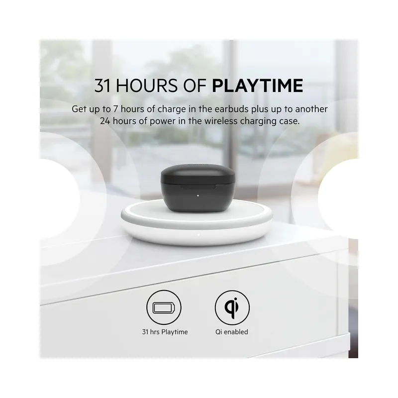 7 hours of playtime per charge (earbuds alone).
