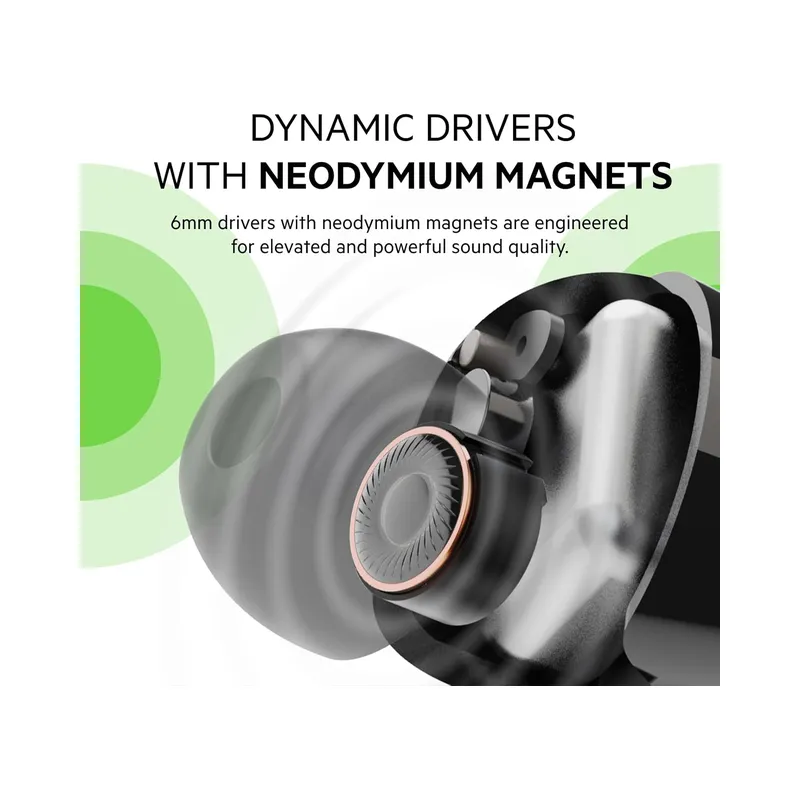 6mm dynamic drivers provide elevated, powerful sound.