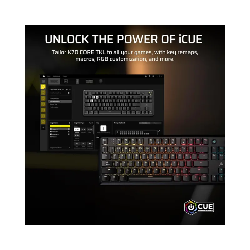 - Model: K70 CORE TKL (Tenkeyless)