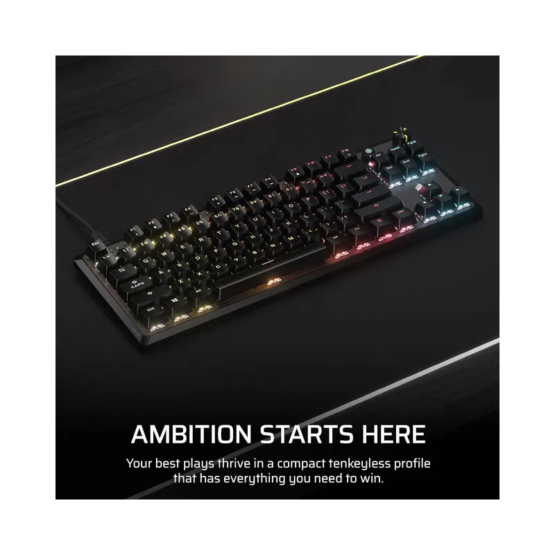 CORSAIR K70 CORE TKL RGB Tenkeyless Mechanical Wired Gaming Keyboard – Pre-Lubed MLX Red v2 Linear Switches, SOCD, ABS Double-Shot Keycaps – Black (Brand New)