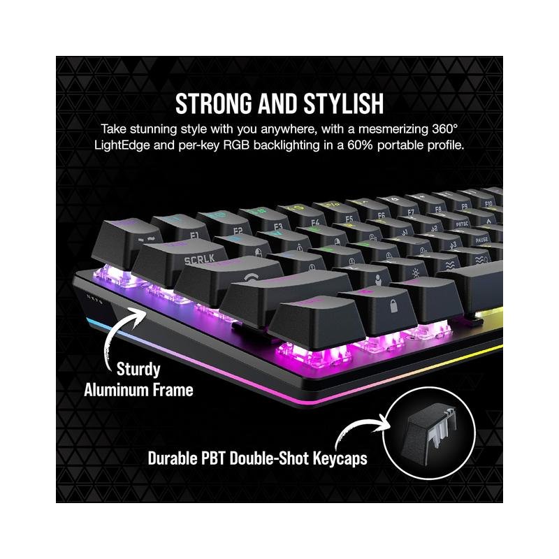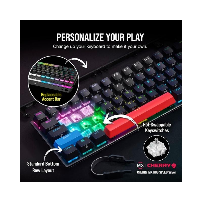 - Customizable Keyswitches: The K70 PRO MINI comes with fast 100-million-keystroke CHERRY MX SPEED keyswitches, featuring a modular design that allows you to swap out any combination of MX-compatible 3-pin switches to fine-tune your keyboard layout and performance.