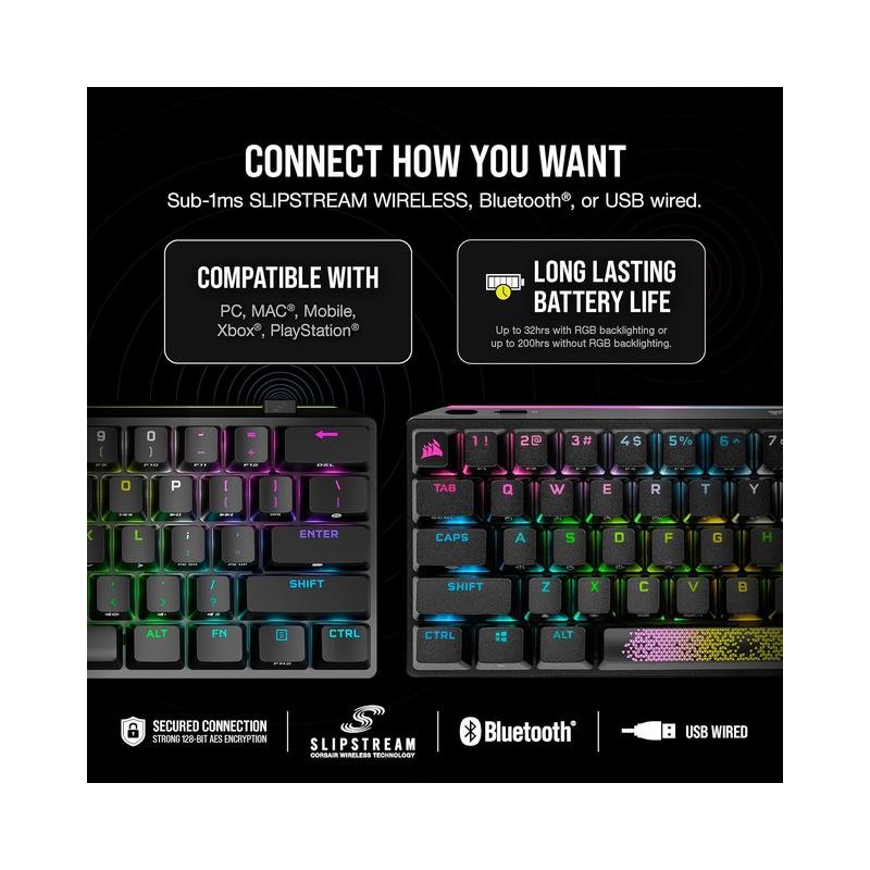 - Three Ways to Connect: Enjoy ultra-fast connectivity with three options: sub-1ms SLIPSTREAM WIRELESS, low-latency Bluetooth, or USB wired with CORSAIR AXON 8,000Hz hyper-polling for seamless gaming.