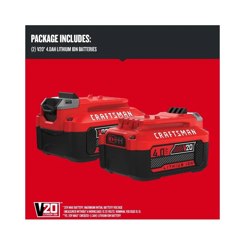 CRAFTSMAN V20 4.0Ah Lithium Ion Battery – 2-Pack