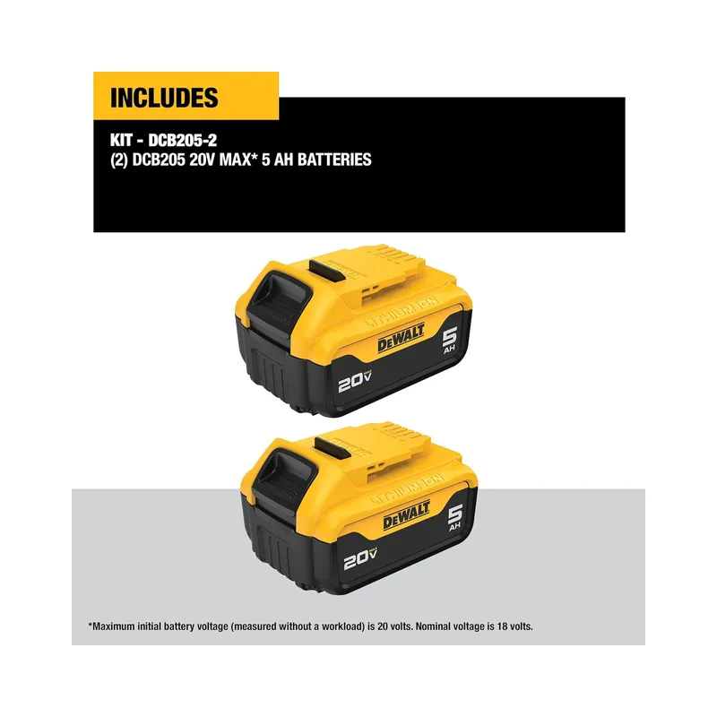 Premium Battery Performance: The included XR Lithium-Ion batteries offer up to 60% more capacity than the standard DEWALT 20V MAX battery (DCB200), providing extended runtime and improved efficiency on the job.