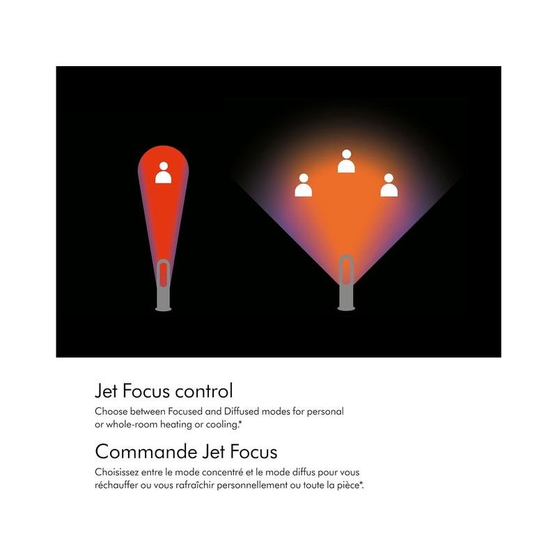 - Jet Focus control: Choose between Focused and Diffused modes for personal or whole-room heating.* And direct cooling or a gentle breeze in hot weather.