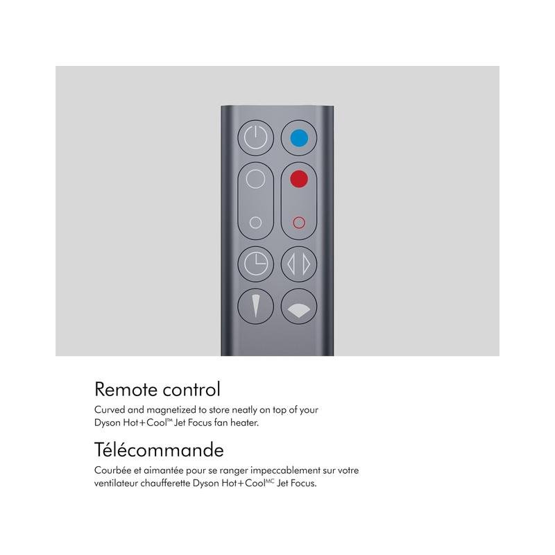 - Remote control: Curved and magnetized to store neatly on your Dyson Hot+Cool Jet Focus fan heater.