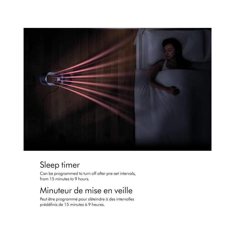 - Sleep timer: Can be programmed to turn off after pre-set intervals, from 15 minutes to 9 hours.