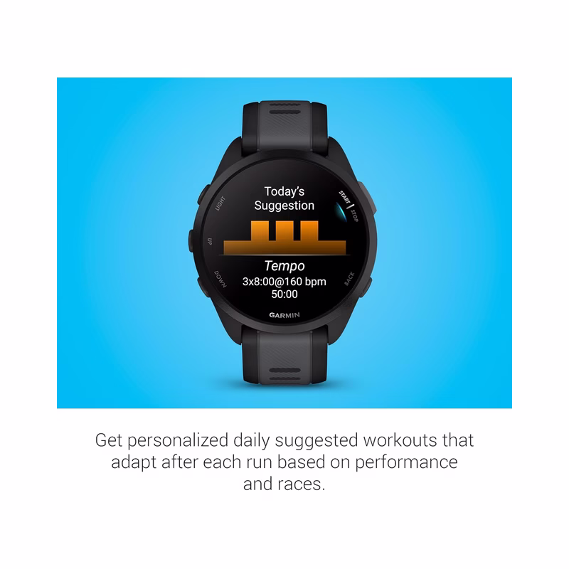 The Garmin Forerunner 165 is an easy-to-use running smartwatch designed to help you train smarter and recover better. Featuring a bright 1.2″ AMOLED touchscreen, built-in GPS, and advanced training metrics, it delivers powerful performance insights in a lightweight and comfortable 43 mm design.