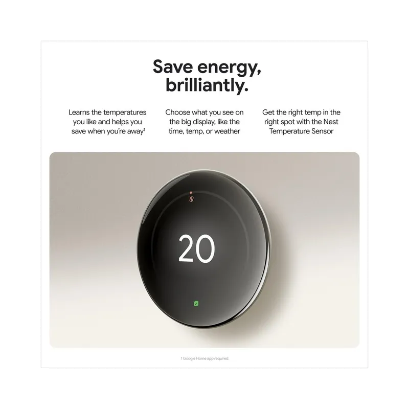 The Nest Learning Thermostat (4th Gen) is Google’s most advanced smart thermostat yet—engineered for elegance, comfort, and maximum energy savings. With intelligent learning capabilities, it adapts to your schedule, preferences, and even the weather outside.