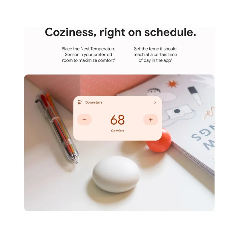 • The More, the Cozier: Use up to six sensors to monitor different rooms, prioritize comfort in one space, or balance the average temperature across areas like bedrooms; compatible with Nest Learning Thermostat (3rd and 4th gen) and Nest Thermostat E.