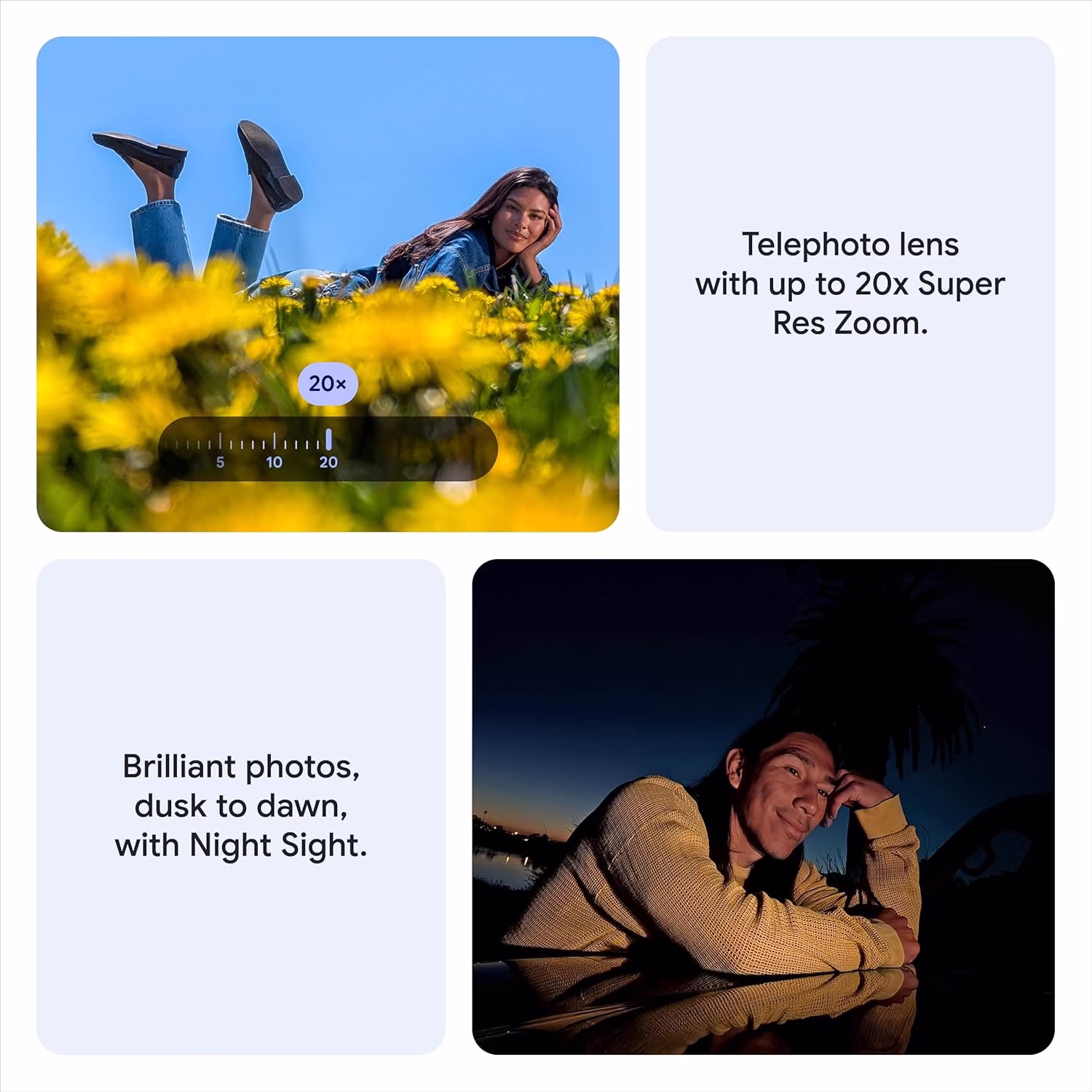- Shoot super-sharp close-ups from a distance, thanks to the 5x telephoto lens with up to 20x Super Res Zoom