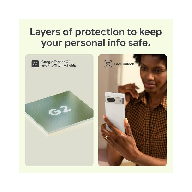 Meet Pixel 7. Powered by Google Tensor G2, it’s fast and secure, with amazing battery life and the advanced Pixel Camera. Take beautifully authentic, accurate photos with Real Tone and stunning video with Cinematic Blur. And with the certified Titan M2 security chip and a built-in VPN, Pixel helps protect your personal data.Pixel 7’s dual rear camera system helps you capture memories in stunning 4K color and detail. And with Cinematic Blur, you can now bring incredible quality to your videos.