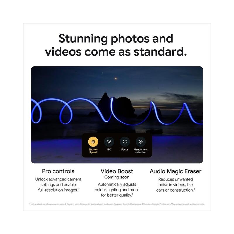 - Record videos in stunning resolution and clear audio, even in crowded, dimly lit places. Add cinematic effects easily through the Google Photos app