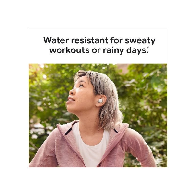 - The wireless earbuds are water resistant, so rainy days and sweaty workouts are no problem.