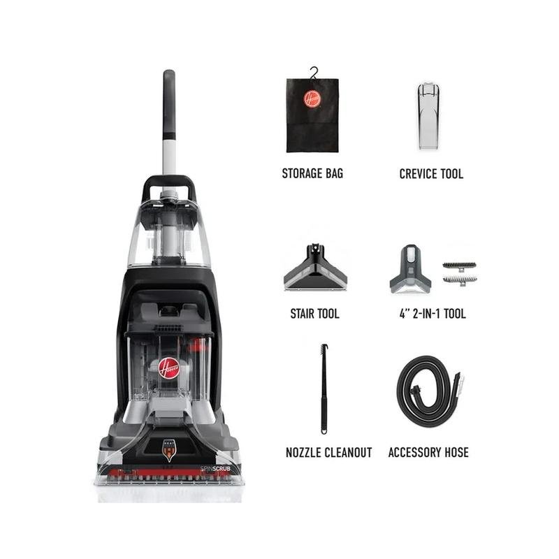 The Hoover PowerScrub XL+ Carpet Cleaner delivers a deep, whole-home clean by tackling tough, set-in stains with ease. Engineered with five counter-rotating SpinScrub® brushes and enhanced with HeatForce™ Technology, it provides powerful cleaning and faster drying, so your carpets are refreshed and ready in less time.