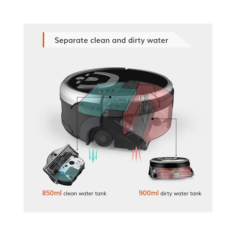 WATER TANK SEPARATION DESIGN: Equipped with two separate water tanks—a 0.85L tank for clean water and a 0.9L tank for dirty water. This separation improves cleaning efficiency and makes maintenance easier.