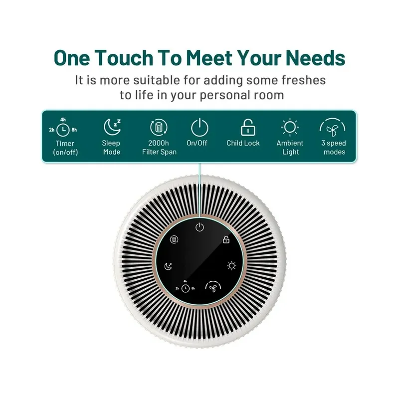 • 3-level fan speeds for different air purification needs.