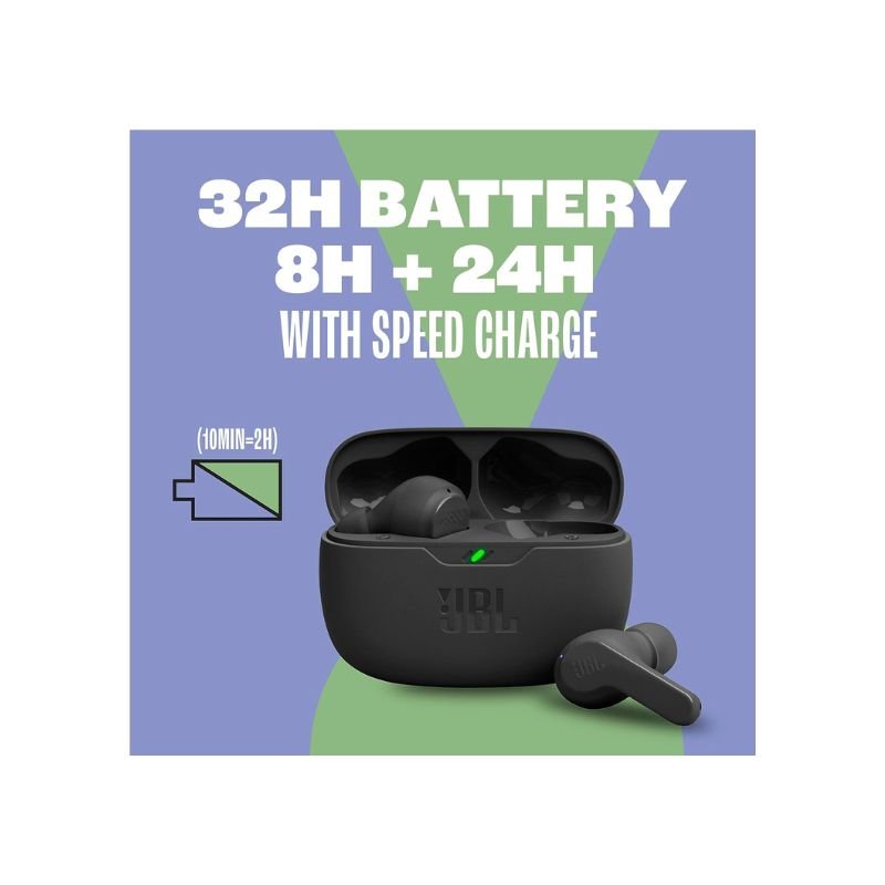 • Up to 32 (8h + 24h) total hours of battery life with speed charging: With 8 hours of battery life in the earbuds and 24 in the case, the JBL Vibe Beam provide all-day audio. And when you need more power, you can speed charge an extra two hours in just 10 minutes.