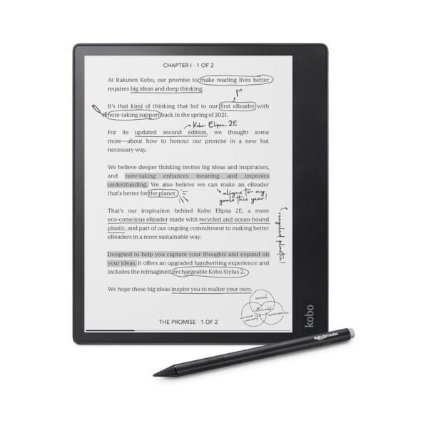 The Kobo Elipsa 2E is a powerful tool for readers and writers alike, offering a large screen for better readability, note-taking capabilities, and access to a vast library of content. Perfect for anyone looking to enhance their eReading experience with a versatile, high-performance device.