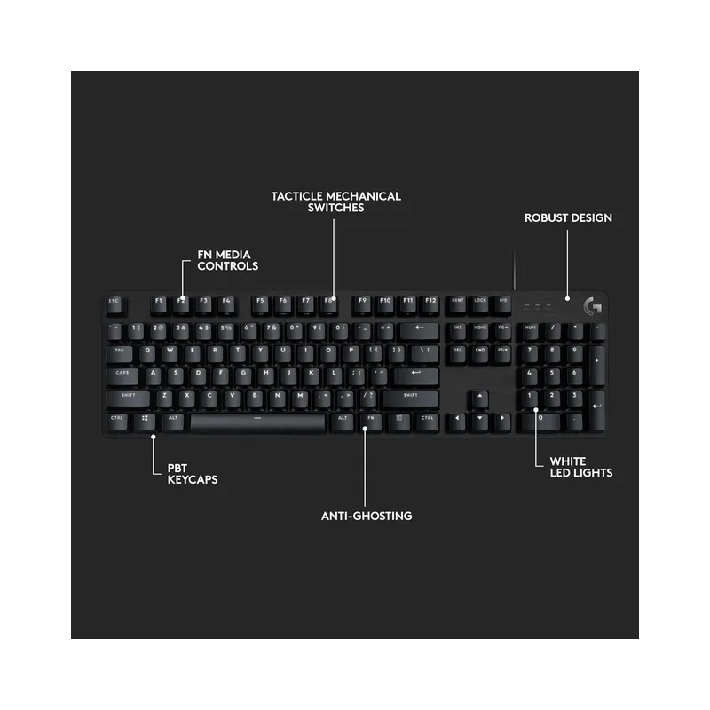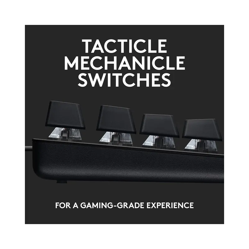 The G413 SE features tactile mechanical switches that offer satisfying feedback, ideal for both gaming and typing. Unlike linear switches, these provide a noticeable bump on actuation, which helps reduce errors. - PBT Keycaps
