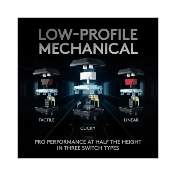 - Low profile mechanical switches: Combines speed, accuracy, and performance at half the height of standard switches.