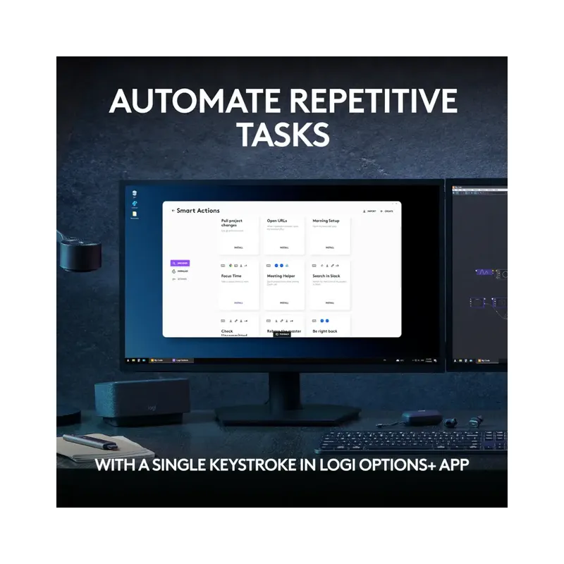 - Automate repetitive tasks: Create Smart Actions shortcuts that trigger multiple commands with a single keystroke using Logi Options+.