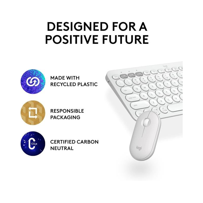 - Environmentally Friendly: Crafted with certified post-consumer recycled plastic—49% in the Pebble Keys 2 keyboard and 58% in the Pebble Mouse 2.