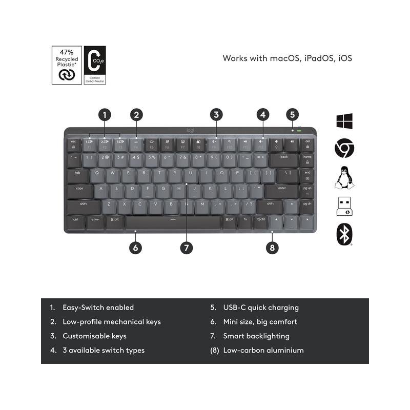 MX Mechanical Mini, Minimalist wireless illuminated keyboard (Mechanical Typing – Linear), Graphite – Brand new