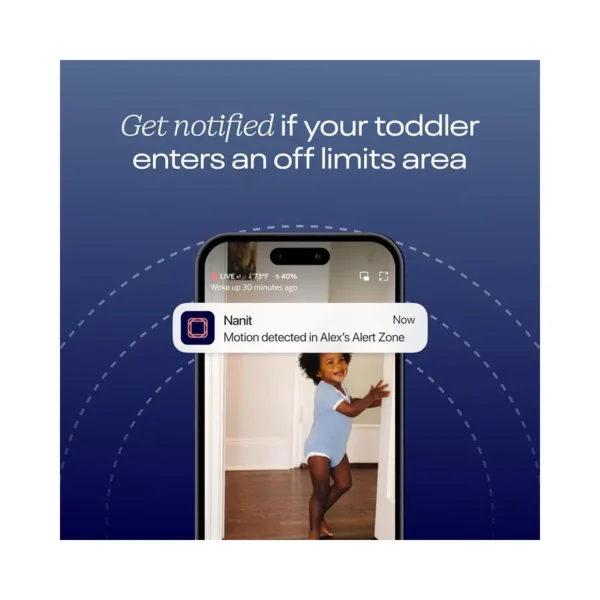 - Alert Zone (Flex Stand exclusive): Detects motion in restricted areas (like outside the crib) and sends real-time alerts to your smartphone.