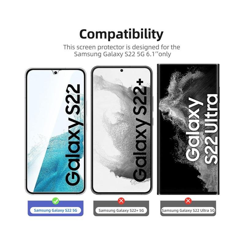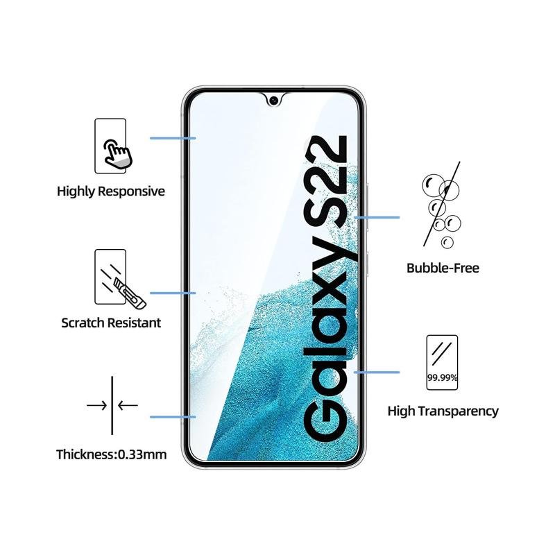 - NEW’C Samsung Galaxy S22 5G Tempered Glass Screen Protector, delicate touch: coated on the back with a solid silicon adhesive which makes installation easy and attaches the film firmly so as not to affect the sensitivity of the touch screen