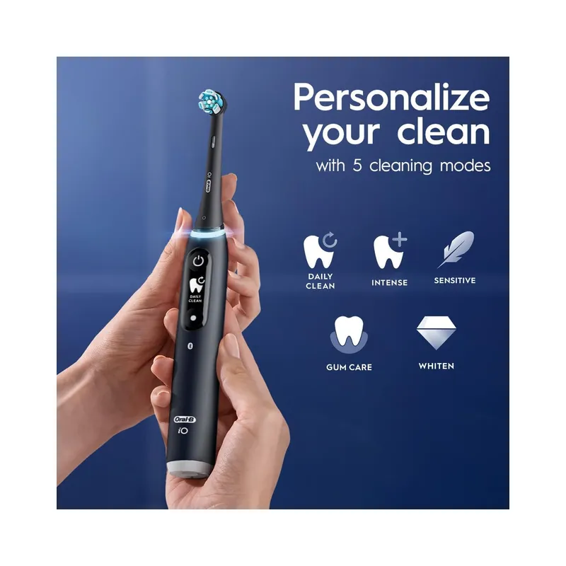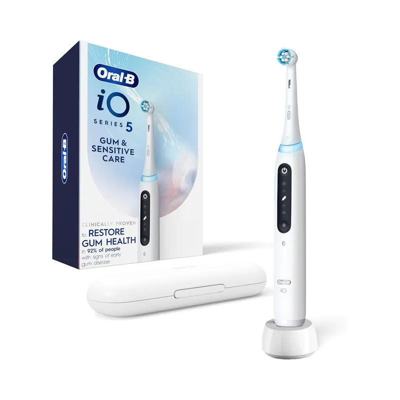 The Oral-B iO Series 5 is a premium electric toothbrush designed to deliver a gentle yet effective clean, especially for users with sensitive gums. It features Oral-B’s advanced iO technology, combining a round brush head with gentle micro-vibrations for synchronized cleaning action.