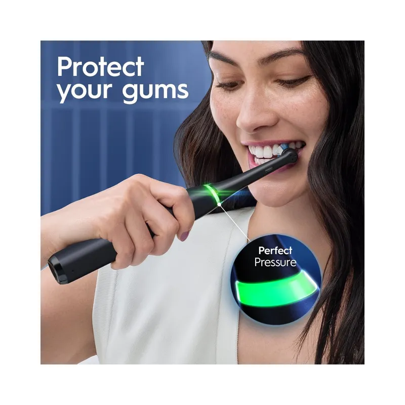 The iO Pressure Sensor is your gum’s best friend—indicating if you’re brushing too hard, too soft, or just right for a safer, more effective clean.