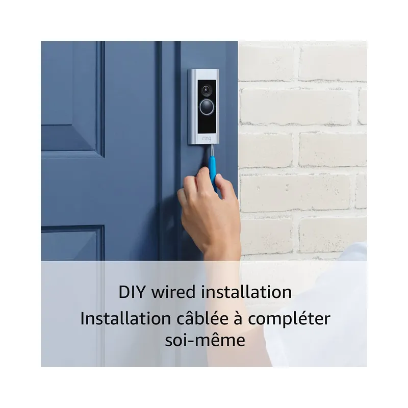 Upgraded wired video doorbell requiring existing doorbell wiring. Includes toolkit for easy installation with doorbell chime.