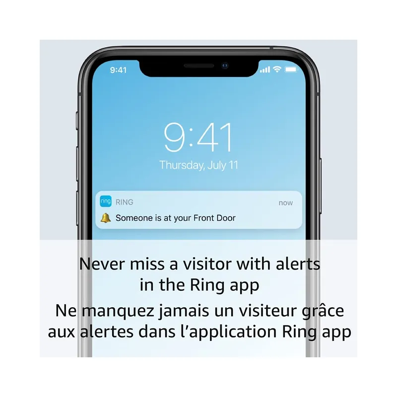 Ring Protect subscription (sold separately) allows video recording storage for up to 180 days, plus alerts for people and packages.