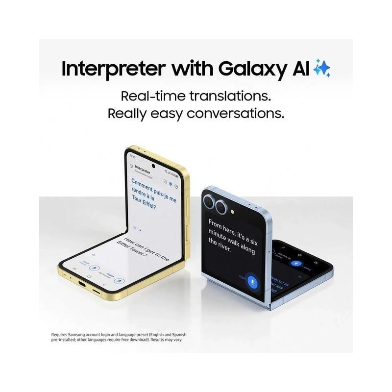 Interpreter with Galaxy AI offers live translation. Enjoy fluent conversations with up to sixteen languages. While in Flex Mode, the Galaxy Z Flip6 displays translations on both sides of the screen for easy face-to-face chat