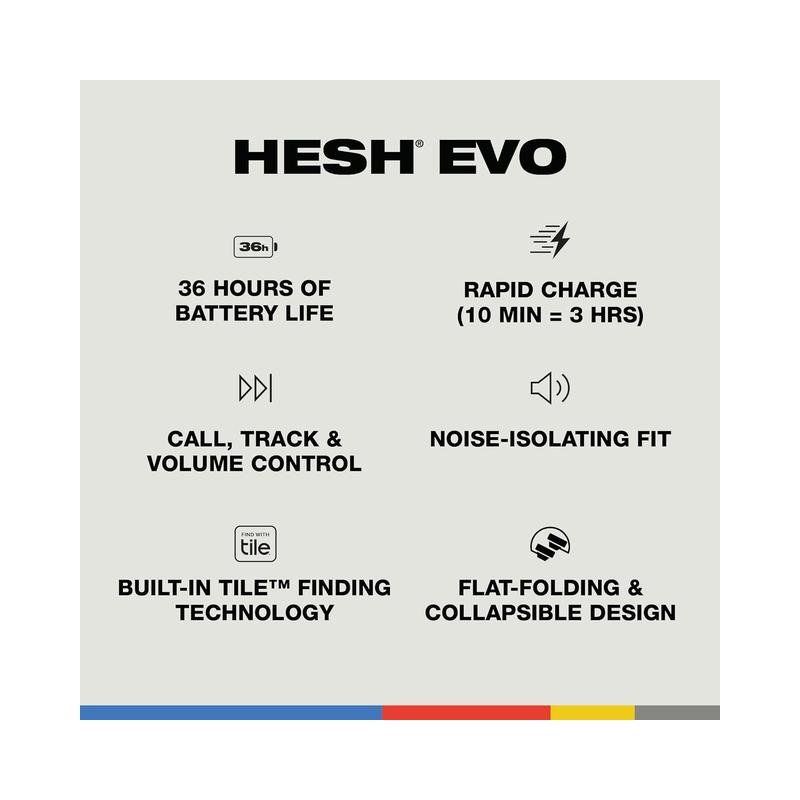 • Never lose track of your headphones again. The Hesh Evo includes Tile tech, allowing you to easily locate your headphones using the Tile app, keeping your gadgets safe.