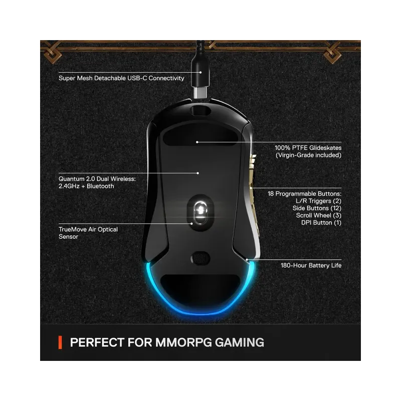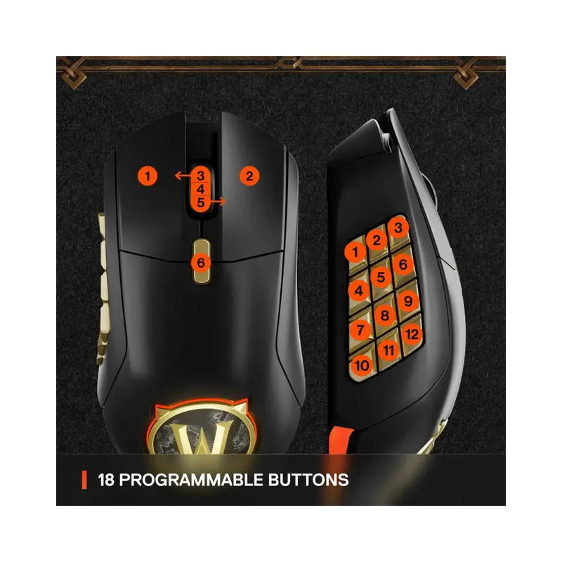 - 18 Programmable Buttons: Includes 12 side thumb buttons – ideal for MMO, MOBA, and RPG games