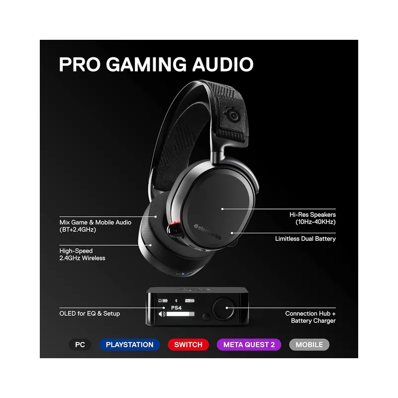 SteelSeries Arctis Pro Wireless Gaming Headset – Non-Stop Dual Battery – AI Noise Canceling Mic – PC, PS5, PS4, Mobile, Black – Brand New