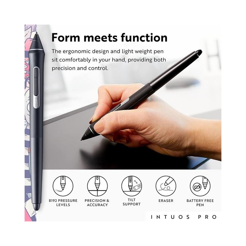 Experience precise and responsive digital drawing with Wacom’s latest pen technology, offering 8,192 levels of pressure sensitivity, tilt recognition, and virtually lag-free tracking. The medium-sized tablet features an ultra-slim design with a larger active area (8.7″ x 5.8″), providing more space for creativity while maintaining a compact footprint.